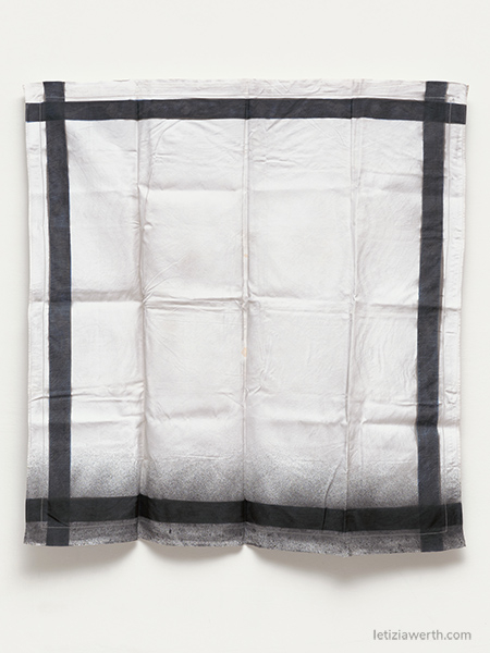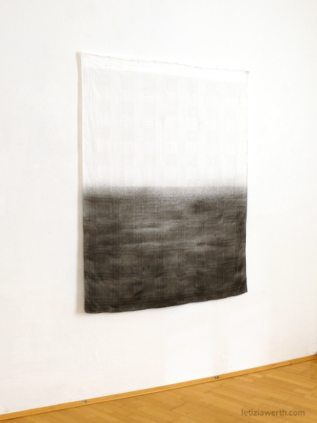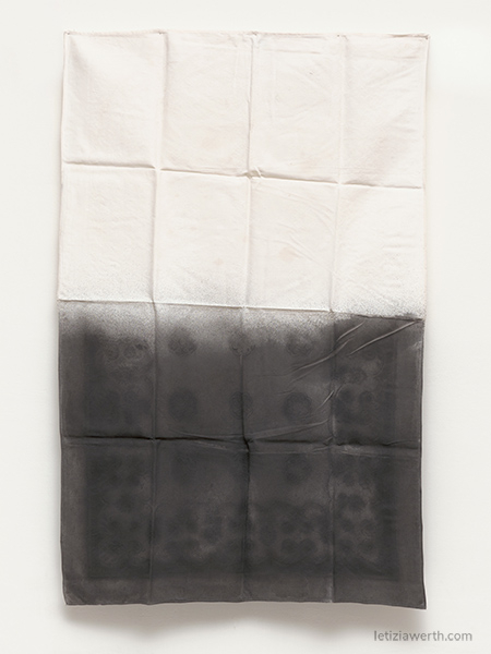 This series of graphite pencil and ink drawings on tablecloths and kitchen fabrics opens a window beyond time and space, inviting the viewer to gaze across the table and linger on its cracks and traces.